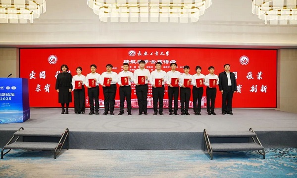 陈先瑞和田志萍为获得瑞航奖学金的同学颁奖